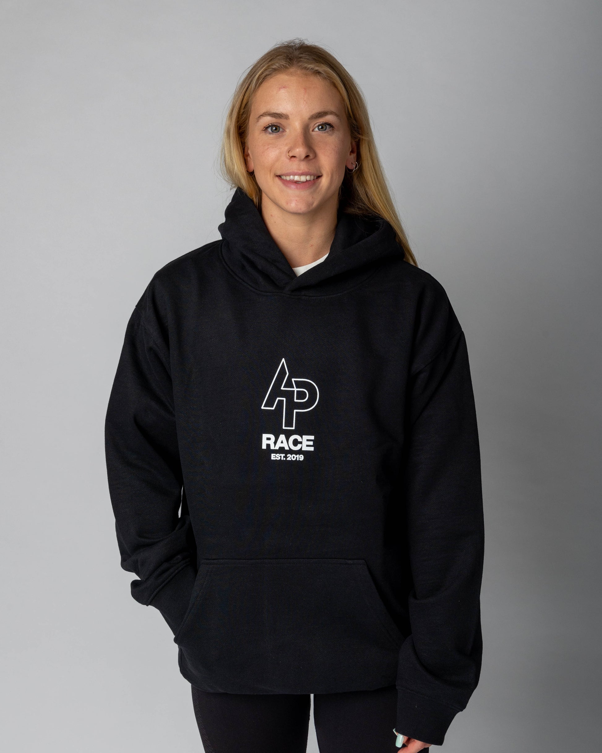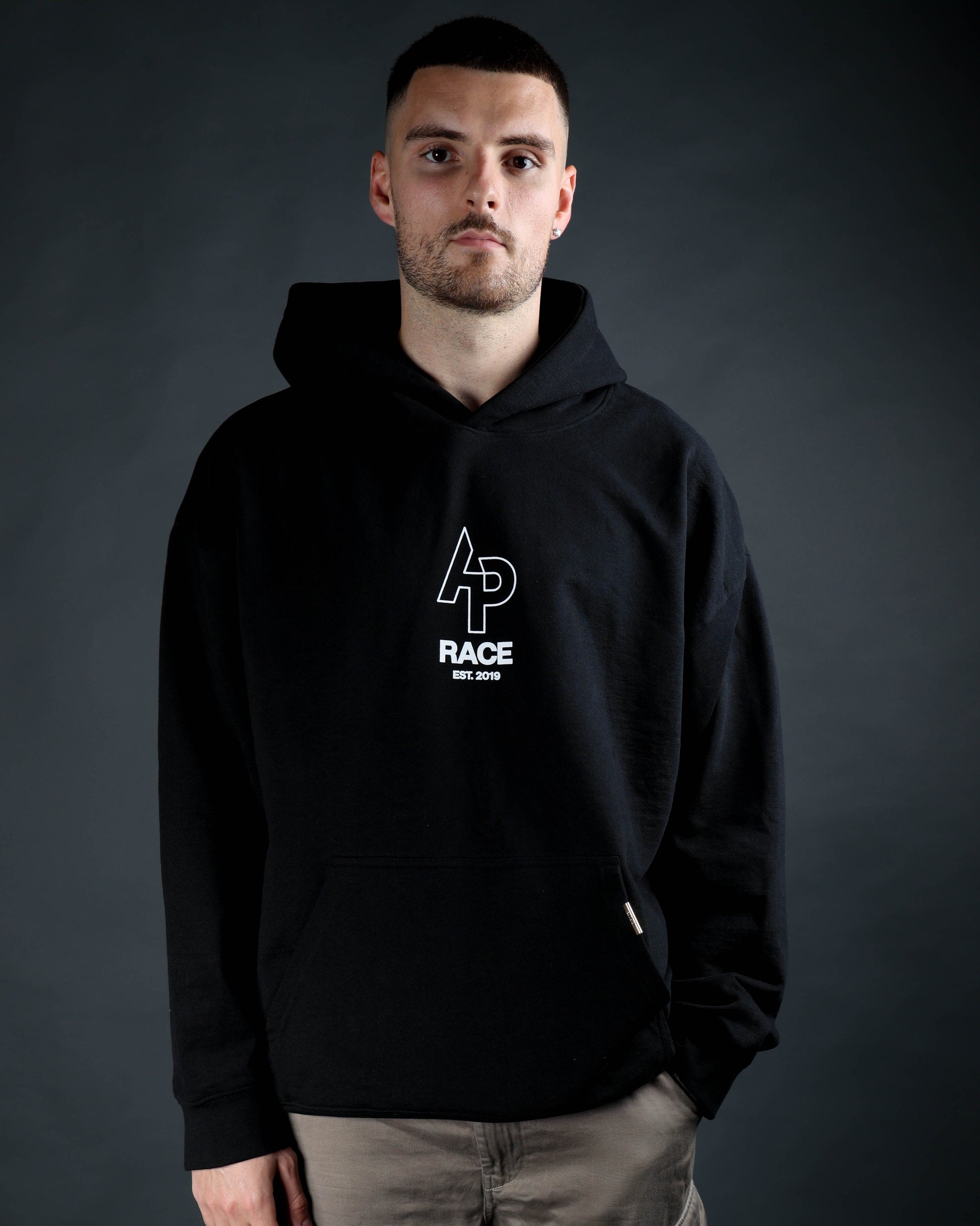 The AP Race Logo Hoodie includes the iconic AP Race logo on the front, and a plain back design. This garment is heavyweight, styled for an oversized fit and features a high quality AP Race metal bar attached to the pocket lining.