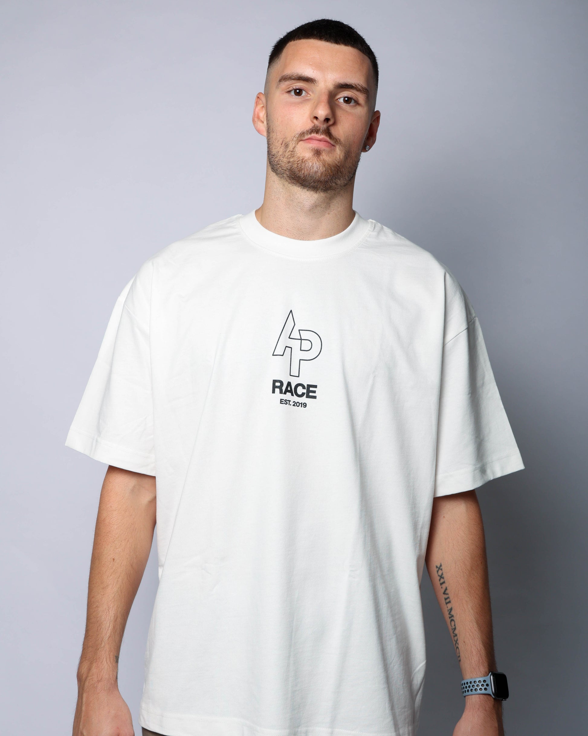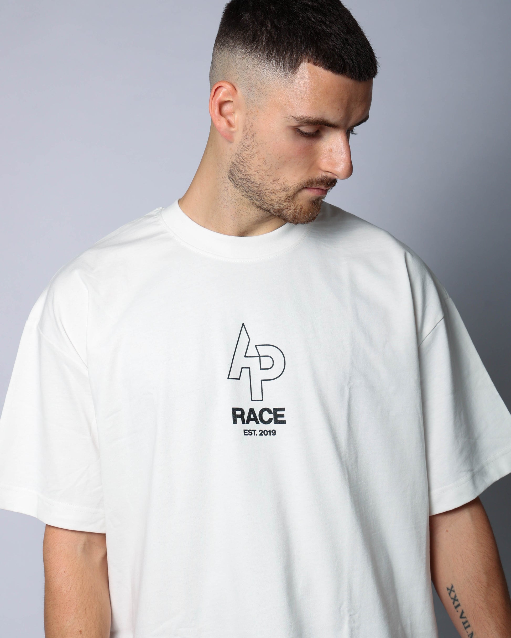 The AP Race Logo T-Shirt includes the iconic AP Race logo on the front, and a plain back design. This garment is heavyweight, styled for an oversized fit and features a high quality AP Race metal bar attached at the front edge.