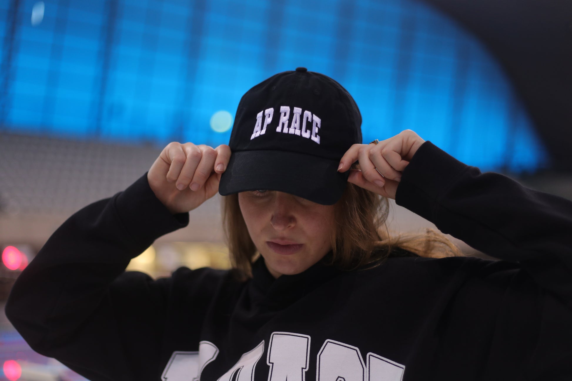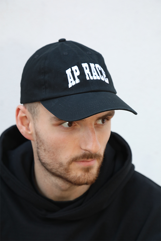 The AP Race Varsity Baseball Cap features embroidered AP Race text on the front, breathable eyelet vents at the top, and an adjustable back strap for the perfect fit.