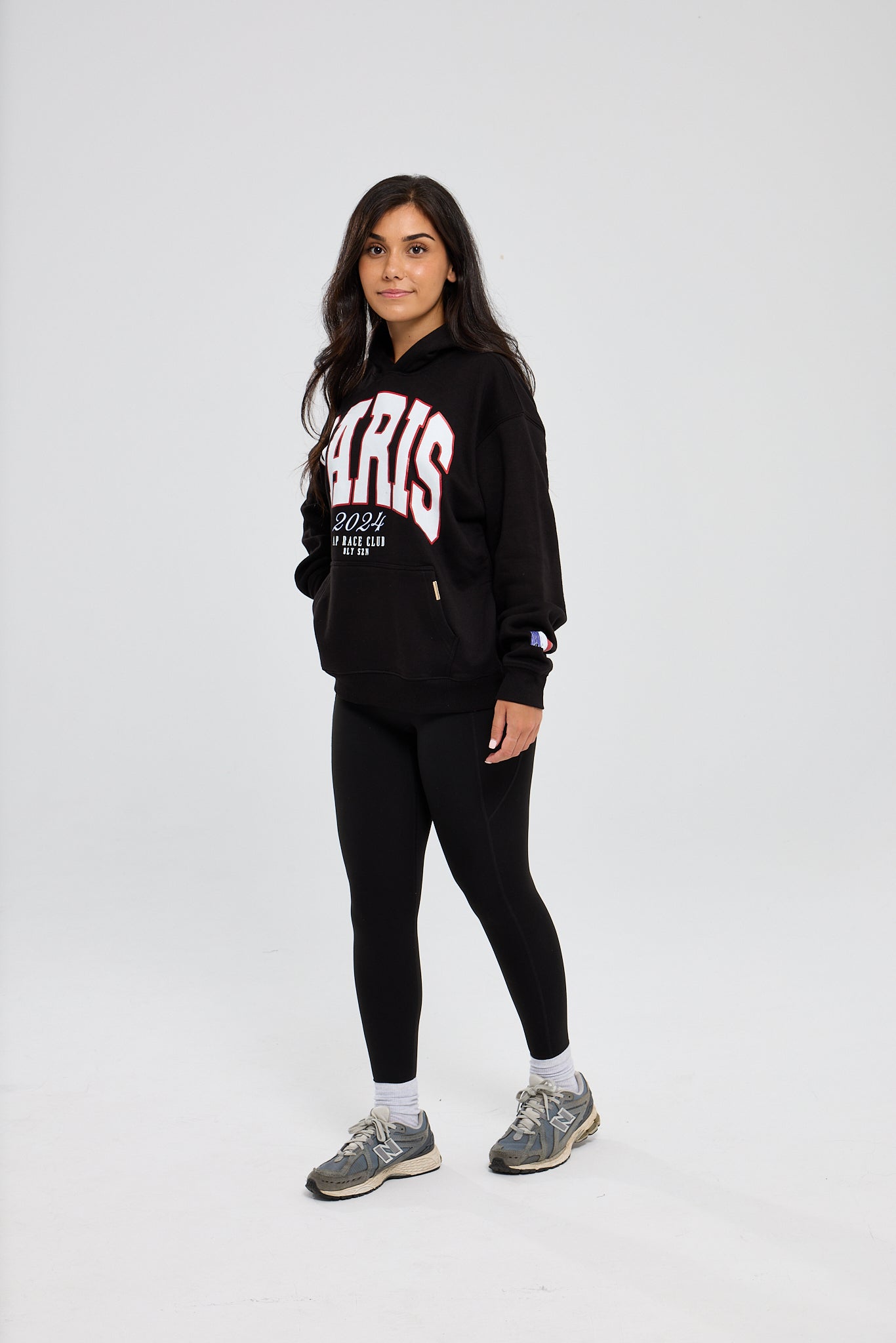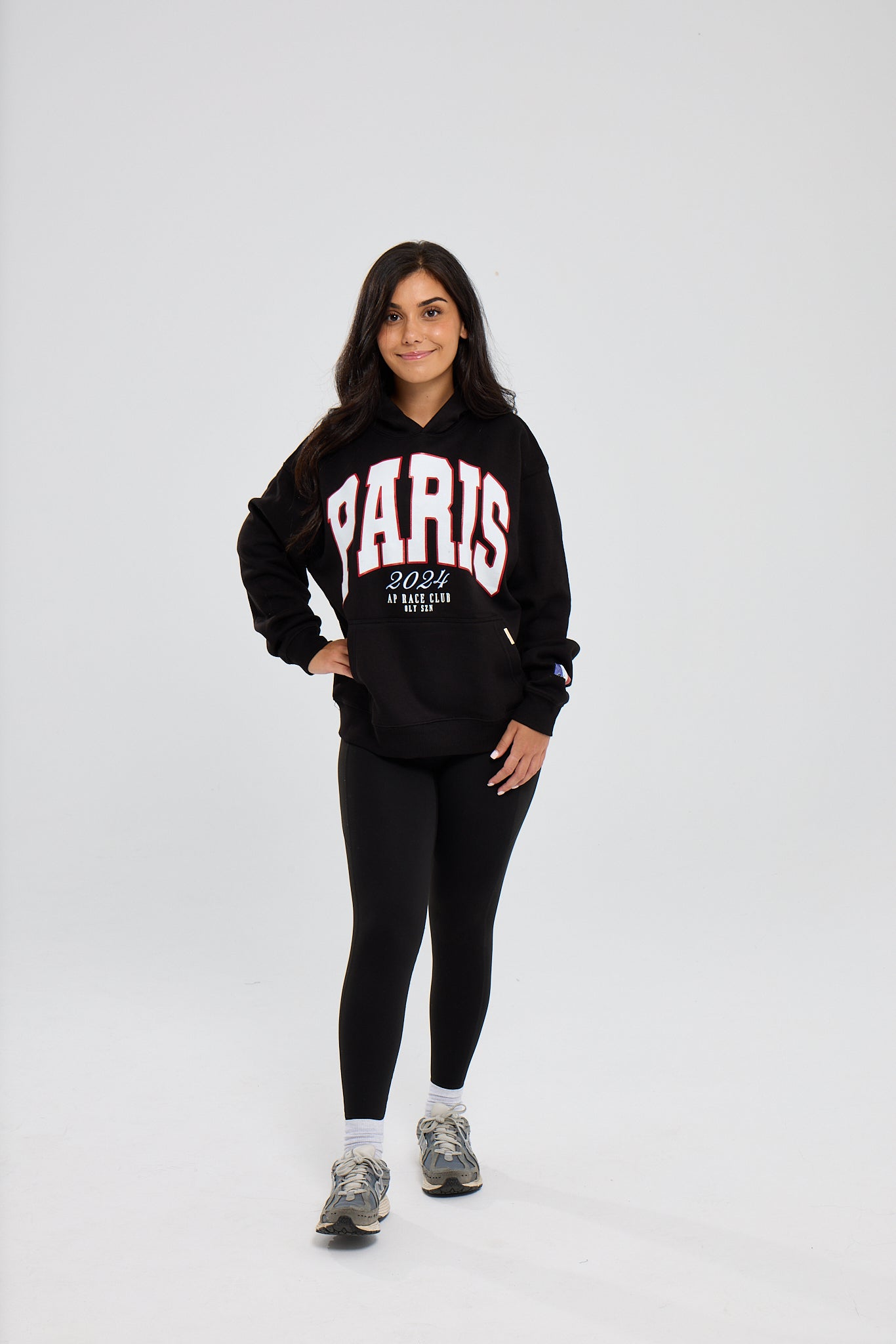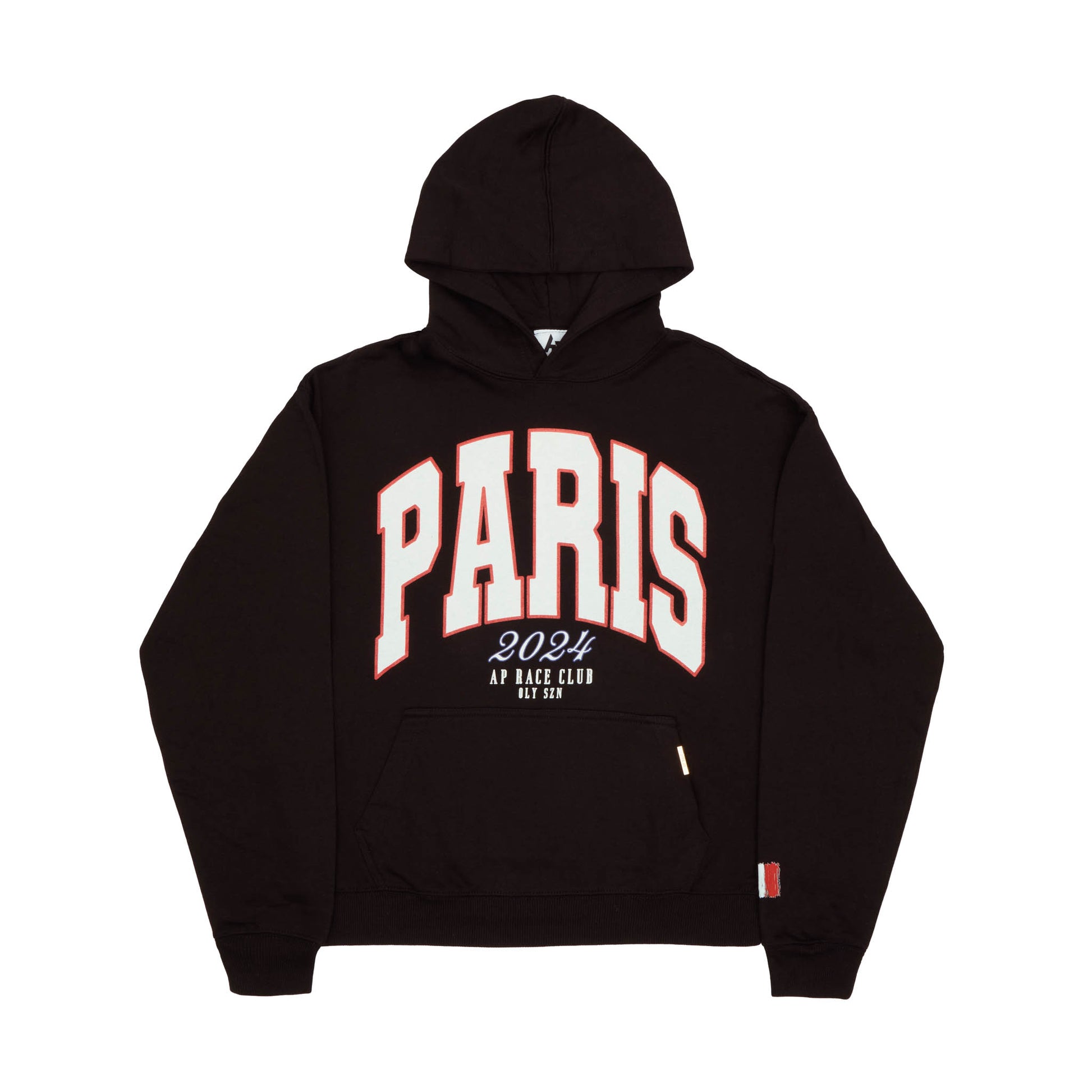 The AP Race Paris Varsity Hoodie features bold Paris text on the front and a plain back design. This is a premium garment that is styled for a relaxed fit and includes a high quality AP Race metal bar on the pocket lining.