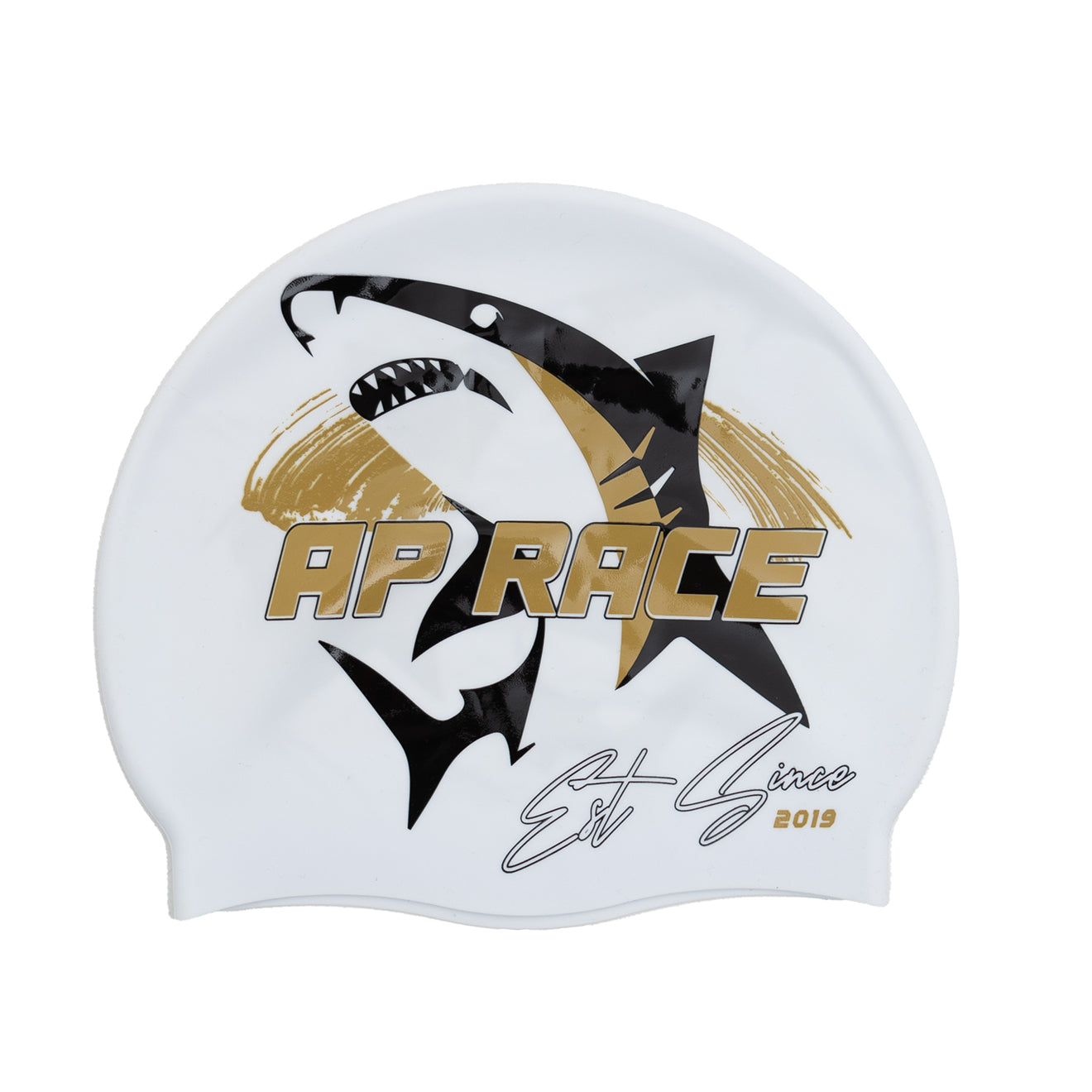The AP Race Shark 2.0 swimming cap features our new reimagined shark design, combined with a premium matte white finish, perfect for training and racing! One size fits all.