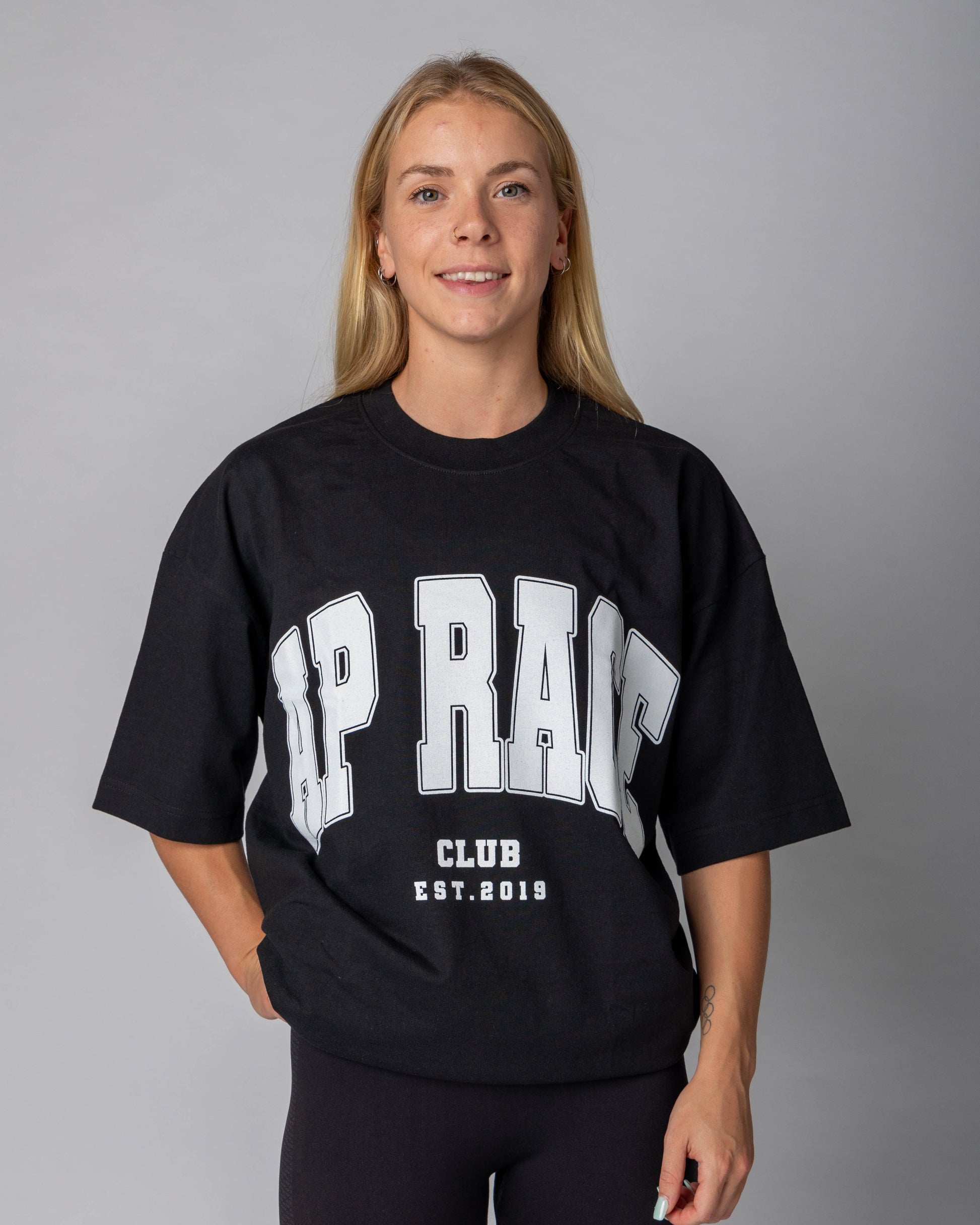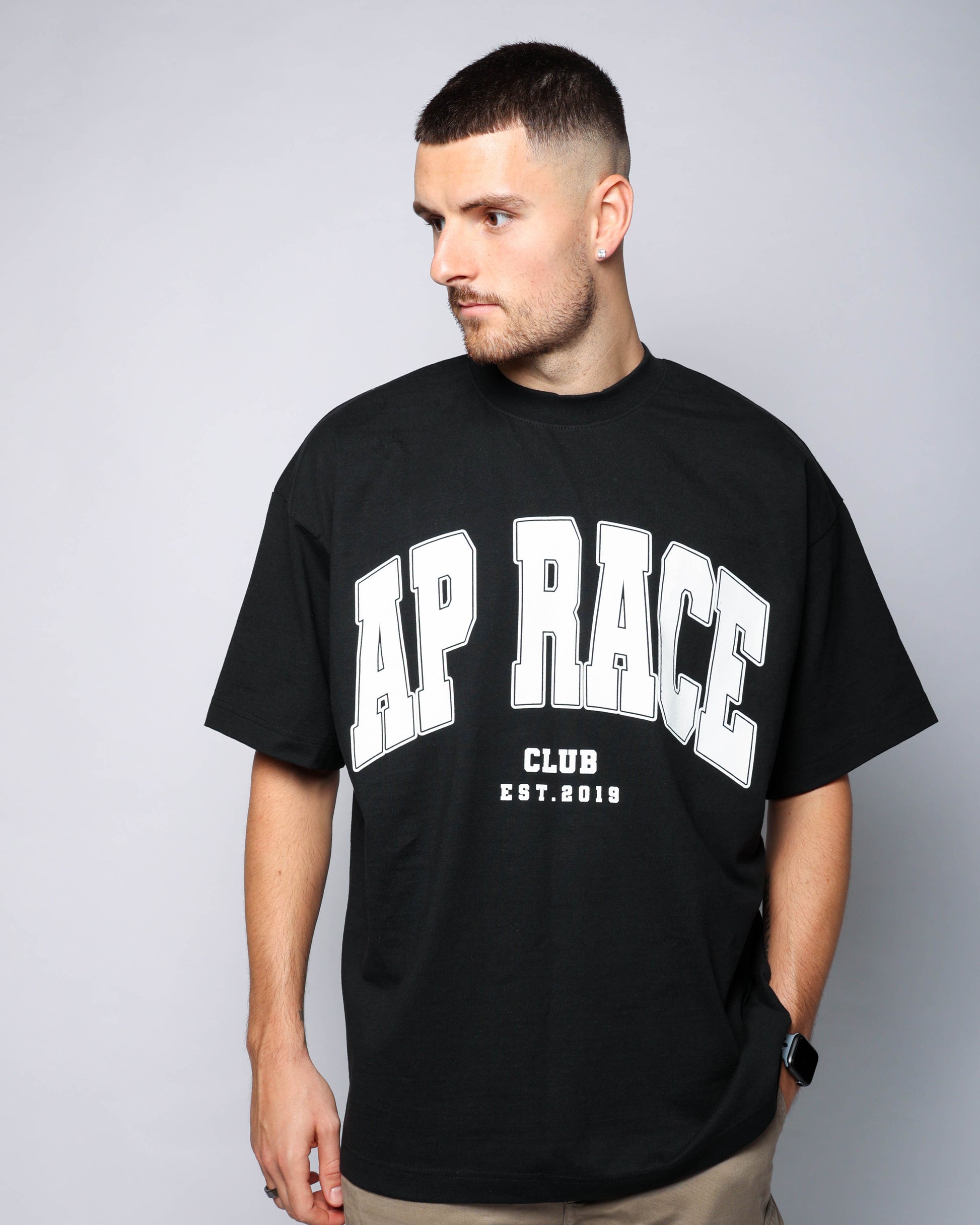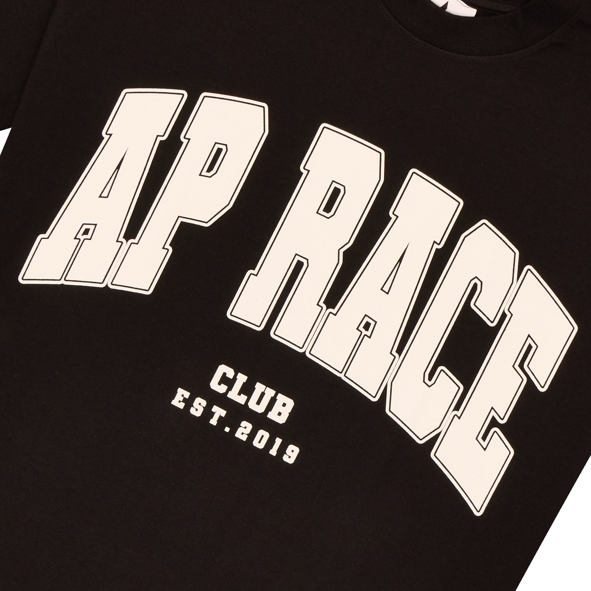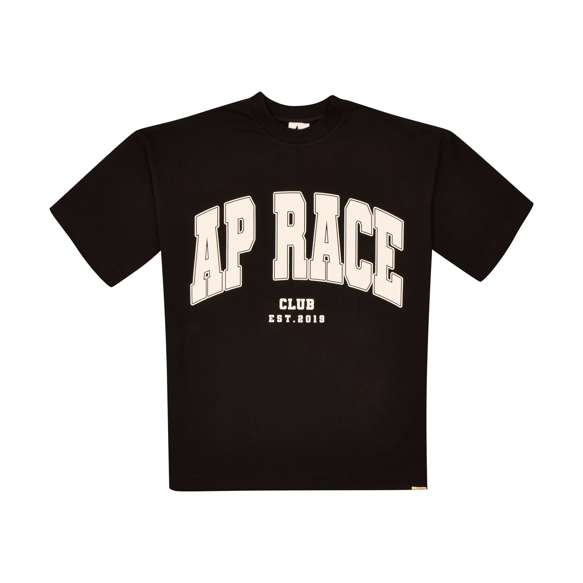 The AP Race Varsity T-Shirt includes bold AP Race text on the front, and a plain back design. This garment is heavyweight, styled for an oversized fit and features a high quality AP Race metal bar attached at the front edge.